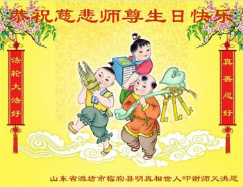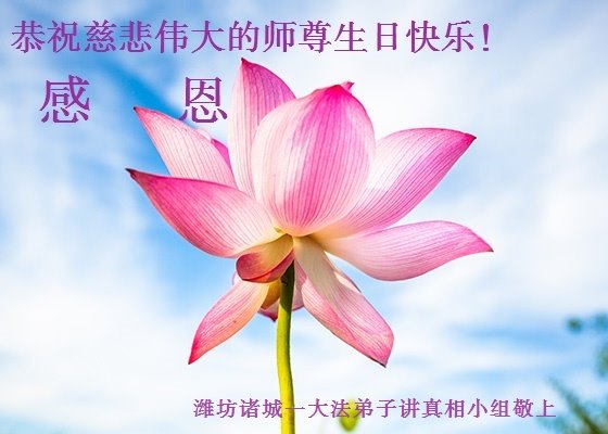 山东省潍坊市临朐县明真相世人恭贺 山东省潍坊市一讲真相小组大法弟子恭祝慈悲伟大的师尊生日快乐!