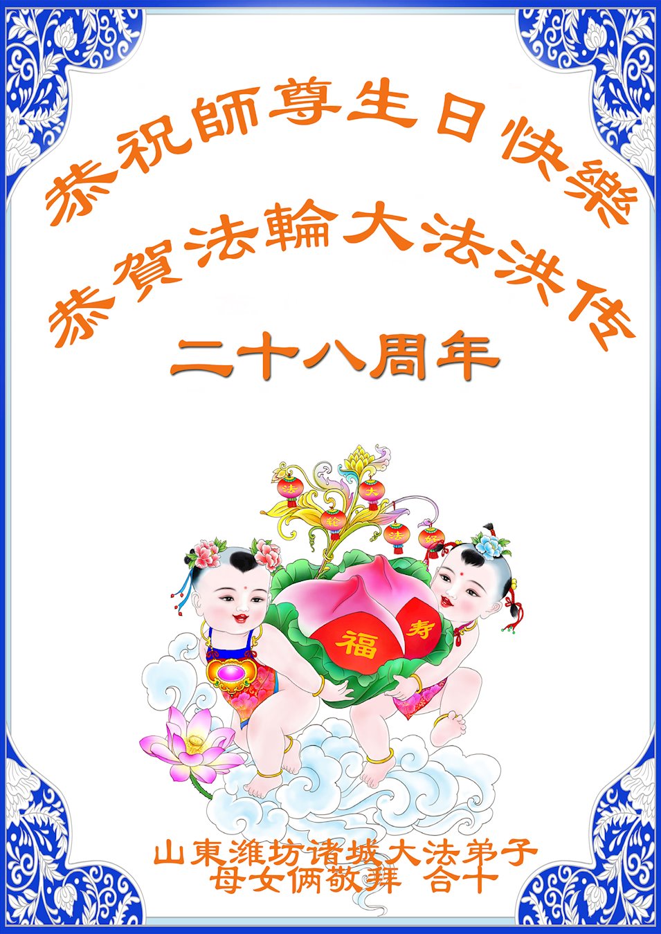 山东省潍坊市昌邑市大法弟子恭贺师尊华诞!普天同庆慈悲伟大的师尊华诞!热烈恭贺世界法轮大法日!