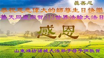 山东省潍坊市寿光市大法弟子恭祝慈悲伟大的师尊生日快乐!恭贺5.13世界法轮大法日!