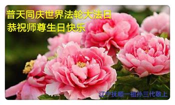 丹东一大法弟子全家及学法小组 辽宁昌图一学法小组大法弟子恭祝师尊生日快乐!普天同庆世界法轮大法日!