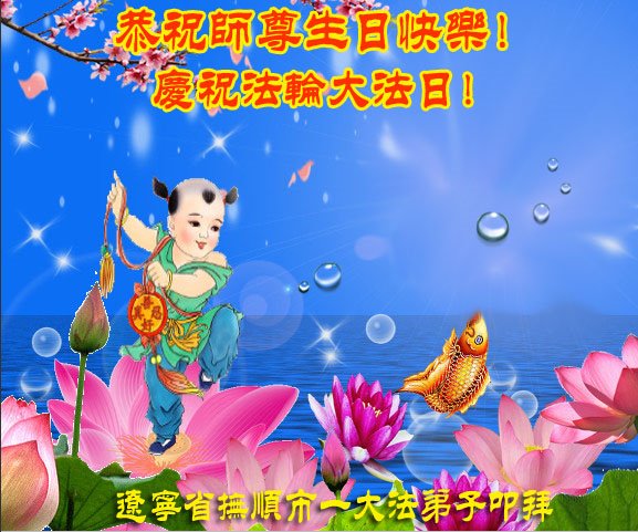 辽宁省抚顺市一大法弟子恭祝师尊生日快乐!庆祝世界法轮大法日!