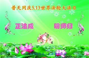 普天同庆5.13世界法轮大法日正法成 盼师归 辽宁抚顺新宾县夫妻大法弟子敬献