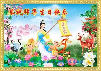 辽宁省丹东一大法弟子全家及学法小组大法弟子恭祝慈悲伟大师尊生日快乐!
