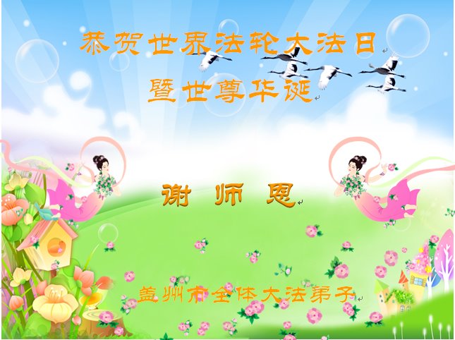 感恩大法!恭祝5·13世界法轮大法日! 辽宁省营口市盖州市全体大法弟子恭贺法轮大法日!