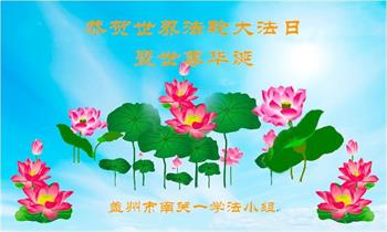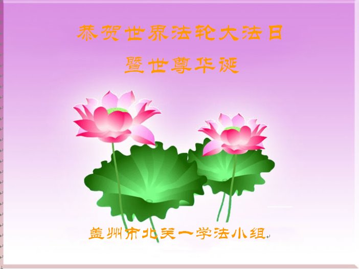 辽宁省营口市盖州市南关一学法小组恭贺世界法轮大法日!恭祝师尊生日快乐!