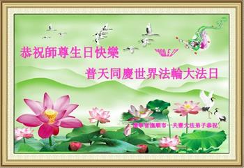 辽宁省丹东大法弟子恭贺世界法轮大法日!恭祝师父生日快乐!