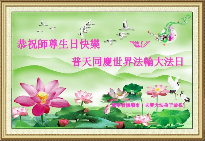 辽宁省抚顺市一夫妻大法弟子恭祝世界法轮大法日!