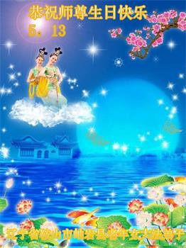 恭祝师尊生日快乐! 我今年75岁,今生能和大法同在,和师尊同在,感到无比的幸运。在此谢谢师尊的慈悲苦度。谢谢,谢谢。 辽宁鞍山一学法小组大法弟子恭祝师尊生日快乐!恭祝5.13法轮大法日!