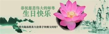 佳木斯建三江北部农场母女同修恭祝慈悲伟大的师尊生日快乐!恭贺世界法轮大法日! 黑龙江省佳木斯市汤原县两大法弟子恭祝慈悲伟大的师父生日快乐!