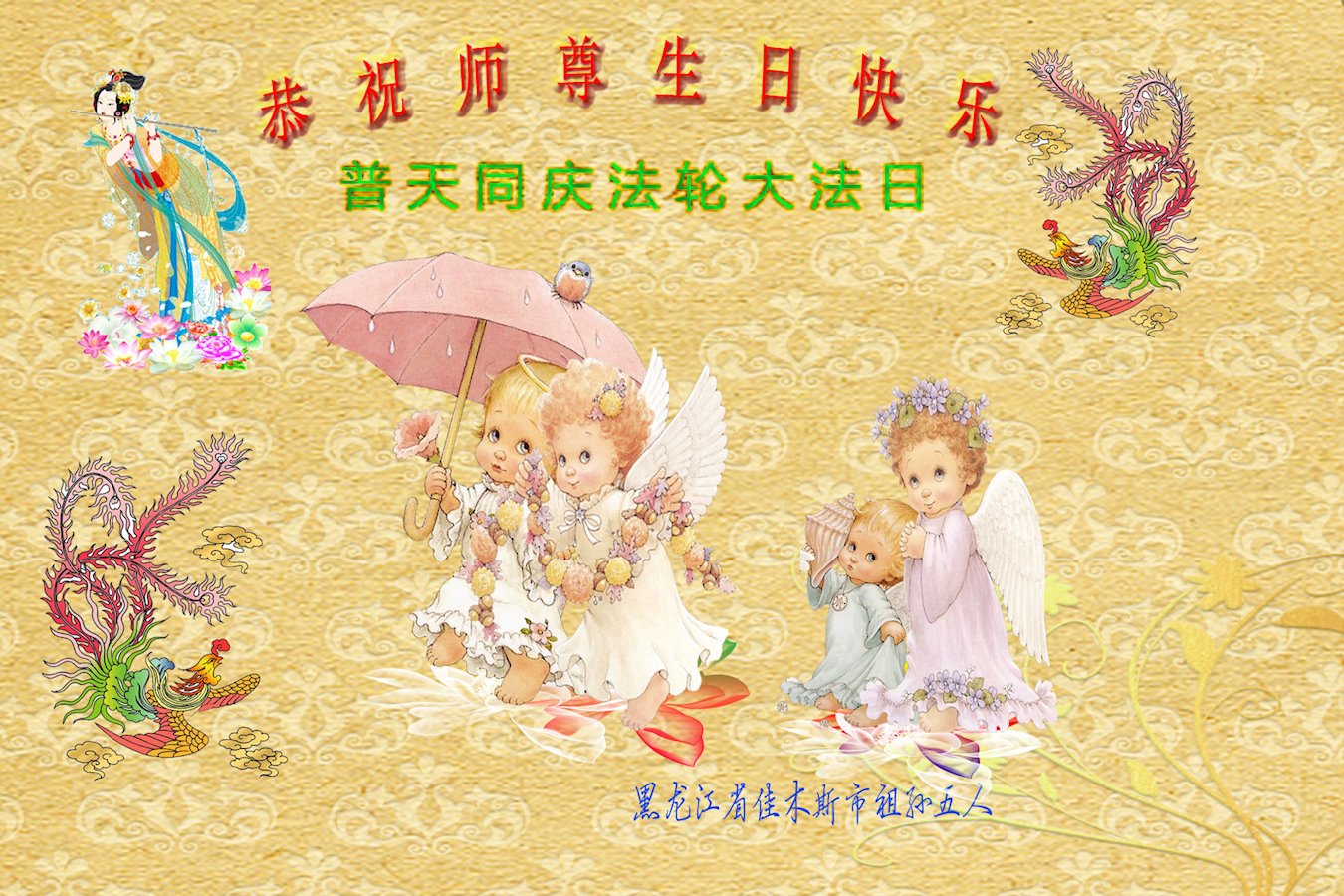 黑龙江省佳木斯一家三口大法弟子恭祝师尊生日快乐!