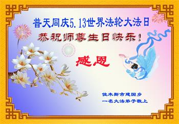 黑龙江省佳木斯建国乡一名大法弟子恭祝师尊生日快乐!