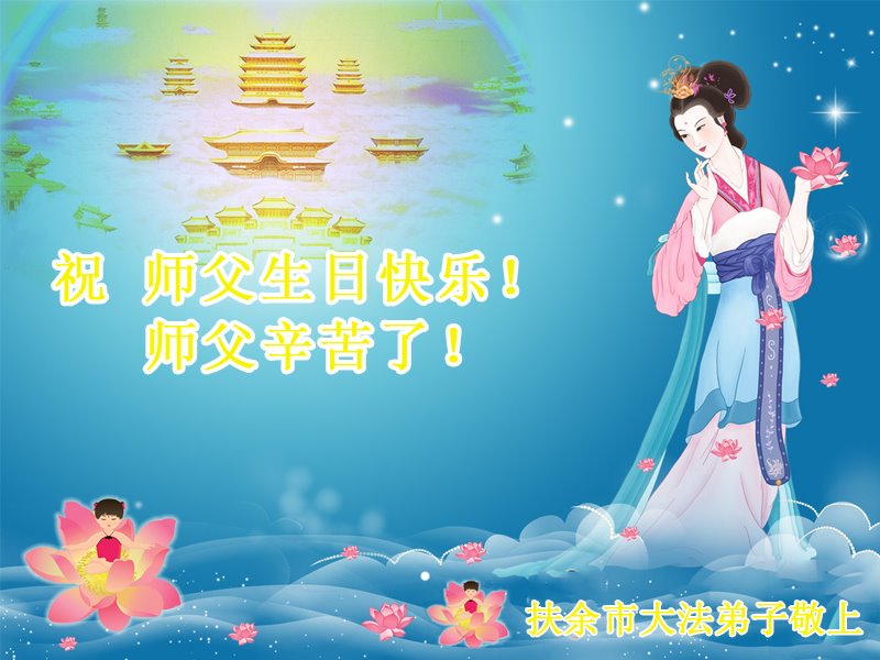 弟子及全家恭祝师尊生日快乐!谢谢师尊慈悲苦度!叩拜师尊!合十! 吉林省辽源市大法弟子恭祝师尊生日快乐!庆祝世界法轮大法日!