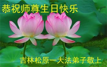吉林省扶余市二大法弟子恭祝慈悲伟大的师尊生日快乐!祝贺法轮大法洪传二十八周年!