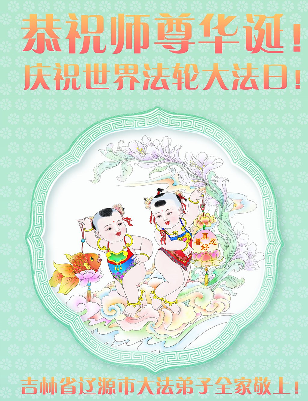 吉林省辽源市大法弟子全家恭祝师尊生日快乐!庆祝世界法轮大法日!