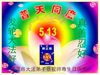 弟子及全家恭祝师尊生日快乐!谢谢师尊慈悲救度!跪拜师恩! 吉林省辽源市大法弟子恭祝师尊生日快乐!庆祝世界法轮大法日二十八周年!