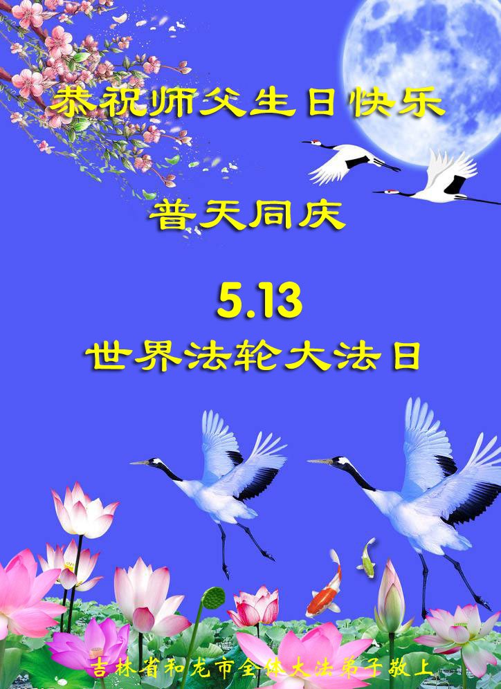 吉林省和龙市全体大法弟子恭祝师父生日快乐!普天同庆5.13法轮大法日! 吉林白山抚松大法弟子及家人恭祝慈悲伟大的师尊生日快乐!