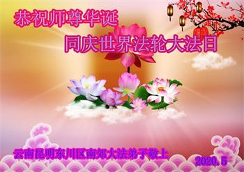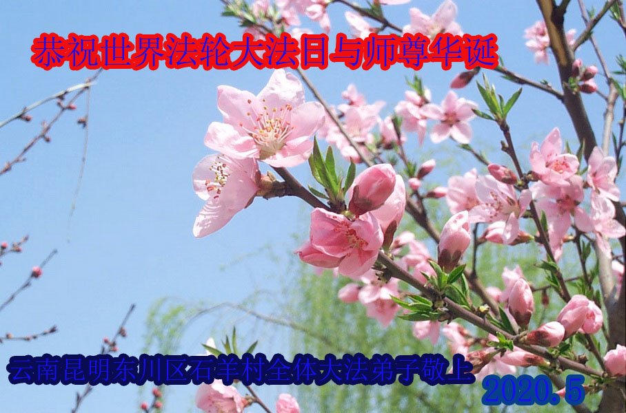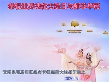 【明慧网二零二零年五月十四日】 云南省昆明市东川区南郊大法弟子恭祝师尊华诞暨世界法轮大法日!