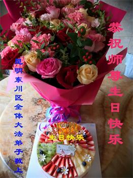 师父您好,在修炼路上,感谢师父的慈悲保护和艰辛付出,谢谢您!师父!谢谢您! 云南昆明一大法弟子恭祝恩师生日快乐!