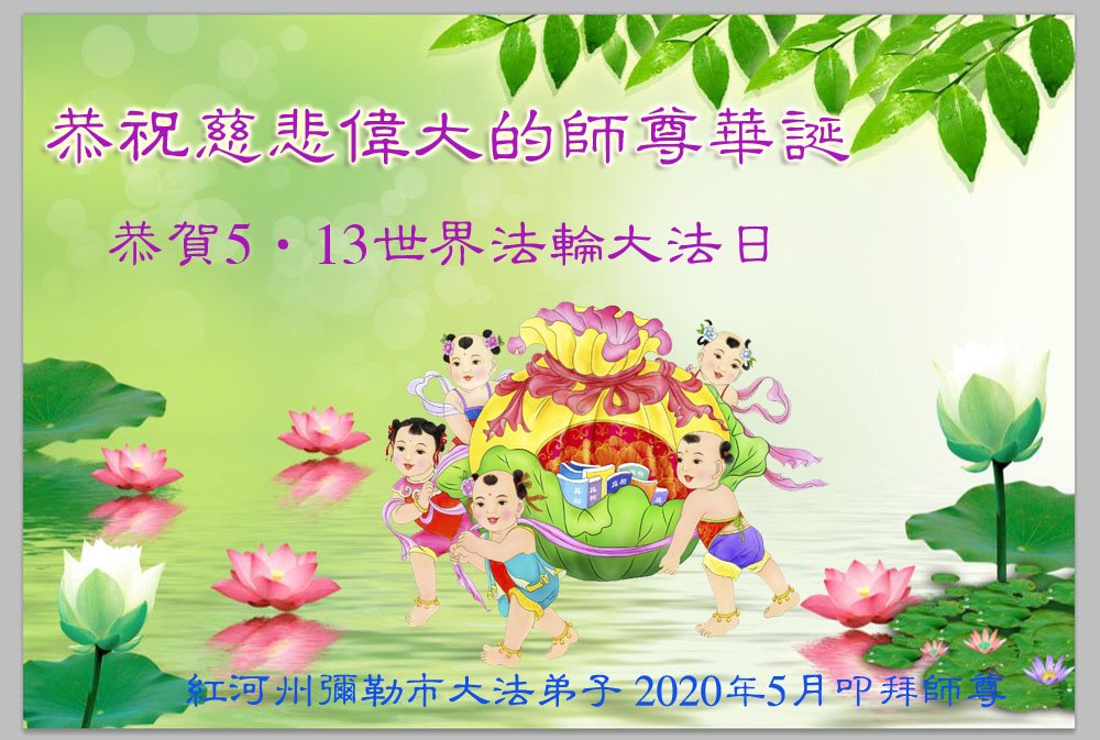 云南省红河州全体大法弟子恭祝慈悲伟大的师尊生日快乐!
