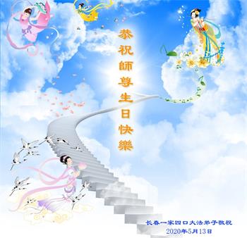 恭祝慈悲伟大的师尊生日快乐!感恩师尊救度之恩! 师父您辛苦了!弟子叩拜师尊!一定要做好三件事,不辜负师尊的慈悲苦度,助师正法圆满随师父回家。 长春大法弟子敬上 二零二零年五月 吉林省长春市九台区大法弟子全家恭祝世界法轮大法日!