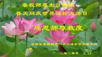 吉林省长春市高新区两位大法弟子恭祝师尊生日快乐!恭贺第21届世界法轮大法日! |