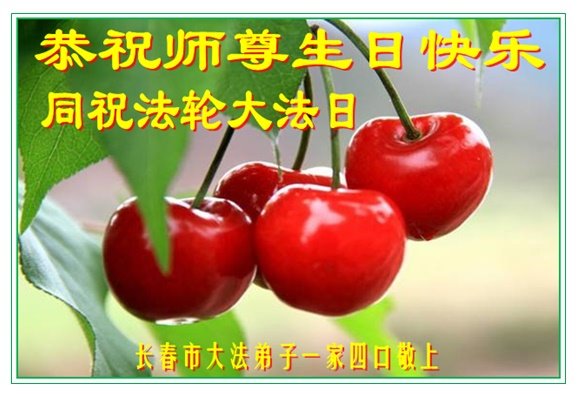 恭祝慈悲伟大师尊生日快乐! 吉林省长春市大法弟子一家四口恭祝师尊生日快乐!