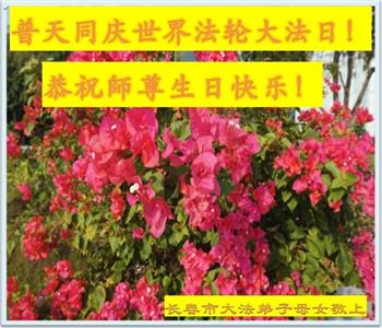 恭祝慈悲伟大的师尊生日快乐! 普天同庆法轮大法日! 吉林省长春市大法弟子敬上 吉林省长春市母子俩大法弟子恭祝师尊生日快乐!同庆世界法轮大法日!