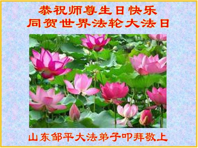 山东邹平大法弟子恭贺师尊华诞!祝贺世界法轮大法日! 山东省淄博市淄川大法弟子恭贺师尊华诞!