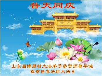 山东淄博全体大法弟子庆祝即将来临的世界法轮大法日!恭祝师尊生日快乐!