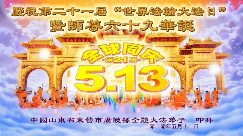 山东淄博周村大法弟子恭贺师尊华诞!祝贺世界法轮大法日! 山东省东营市广饶县全体大法弟子庆祝第二十一届世界法轮大法日!
