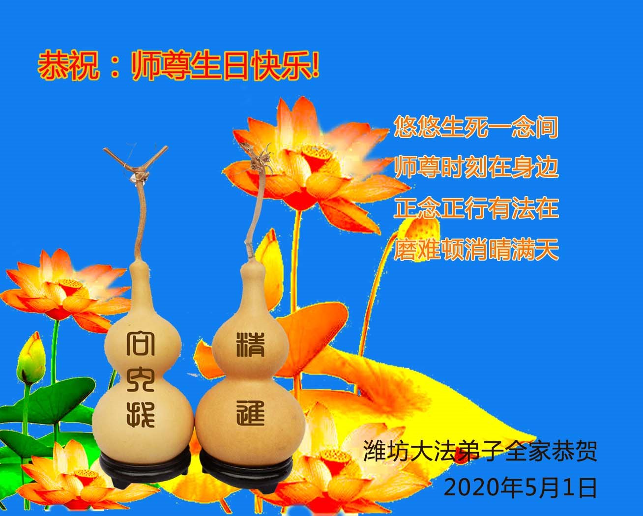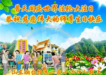【明慧网二零二零年五月十四日】 山东烟台招远一家十二口人恭祝慈悲伟大的师尊生日快乐暨世界法轮大法日!
