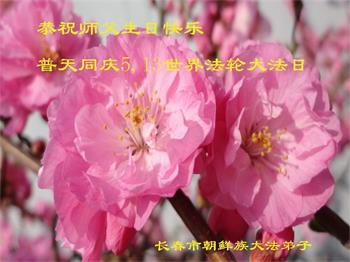 天地失色一夕间,转眼已过二十年。 佛恩圣眷家三口,常有优昙年年绽。 木石化纤花独立,弟子承情不畏难。 人间乱象频频到,佛性人心每每现。 又是一载五一三,盼见师尊盼回天。 黑龙江省沾河林业局全体大法弟子恭祝师父生日快乐!恭贺法轮大法日!