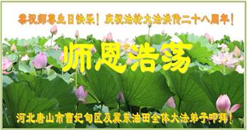 河北唐山曹妃甸区及冀东油田全体大法弟子恭祝师尊生日快乐!庆祝法轮大法洪传二十八周年!
