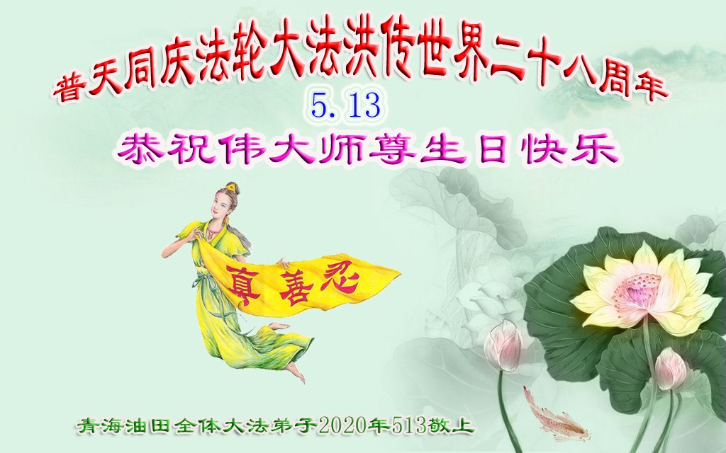 今年的5.13即将到来,在这普天同庆的日子里,河北省卫生系统全体大法弟子祝贺5.13世界法轮大法日!恭祝师尊生日快乐! 弟子们会更加精進,修好自己,多救人!感谢伟大的师尊慈悲救度! 2020年5月11日 江西省九江市原国棉二厂全体大法弟子恭祝师尊华诞!同庆世界法轮大法日!