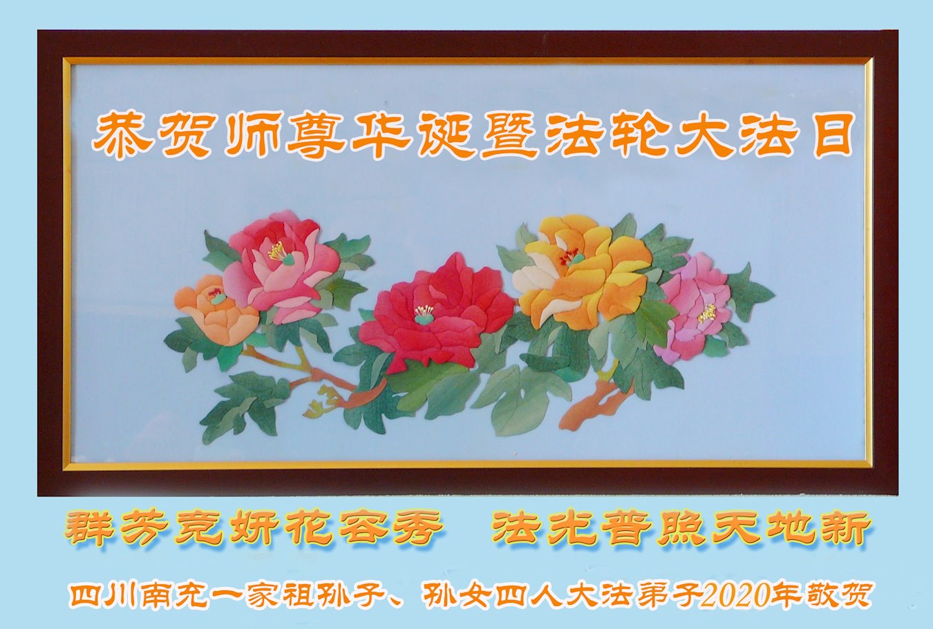 四川省南充市两家三代大法弟子恭贺师尊华诞暨法轮大法日!