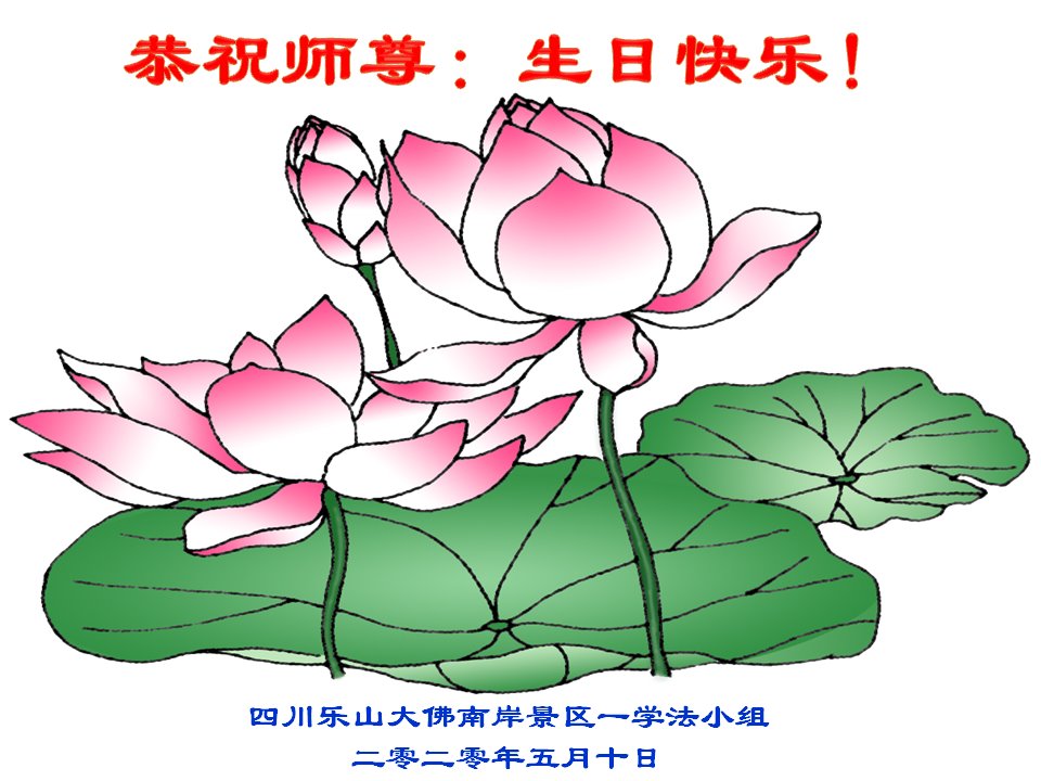 四川乐山大佛南岸景区一学法小组大法弟子敬上 二零二零年五月十日 四川省乐山大佛南岸景区二学法小组大法弟子恭祝师尊生日快乐!