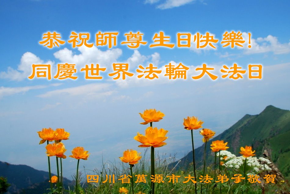 四川乐山大佛南岸景区二学法小组大法弟子敬上 二零二零年五月十日 四川省达州市万源市大法弟子恭贺师尊华诞同庆世界法轮大法日!