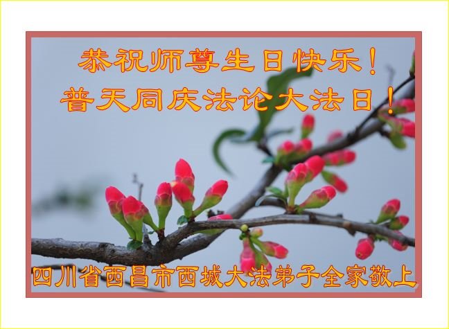 四川省凉山州西昌市西城大法弟子全家恭贺师尊华诞暨法轮大法日!