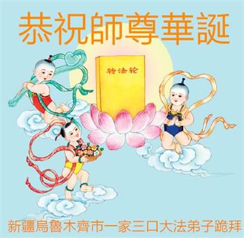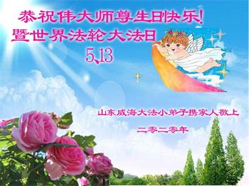山东省威海市大法小弟子携家人恭祝伟大的师尊生日快乐!