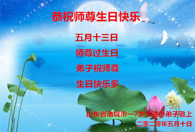 【明慧网二零二零年五月十四日】 山东省烟台市大法小弟子恭祝师父生日快乐!