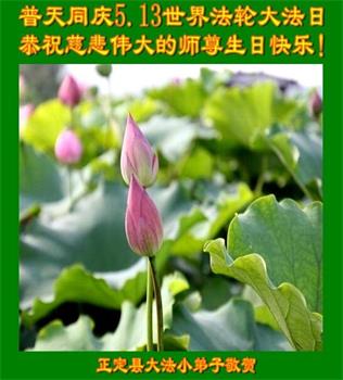 法轮大法好!真善忍好! 河北省大法小弟子恭祝师父生日快乐!