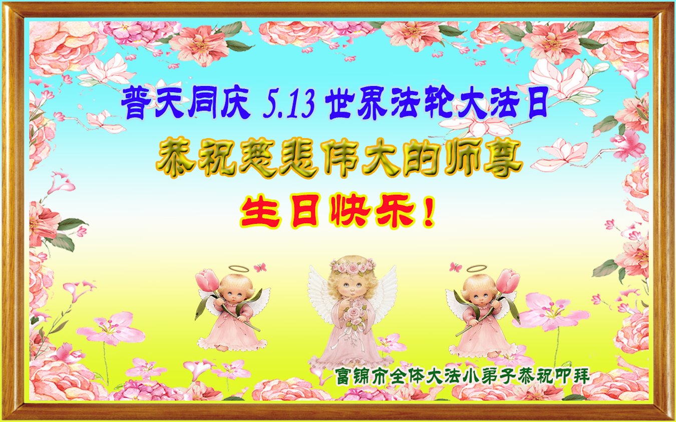 恭贺世界法轮大法日! 弟子要多学法、多炼功,努力做好三件事。 恭祝师父生日快乐!祝贺世界法轮大法日! 黑龙江省佳木斯市富锦市全体大法小弟子恭祝慈悲伟大的师尊生日快乐!