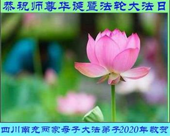 今年是大法洪传二十八周年,也是师尊六十九华诞日,弟子们真心恭祝伟大的师尊生日快乐!我们高呼“法轮大法好,真善忍好”。 在此欢乐时刻,您的弟子真心谢谢师尊对我们二十多年的慈悲苦度,您真的辛苦了,弟子们没法用语言来表达对师尊的感恩!我们只有做好三件事以报答您的大恩,我们一定听您的话,越最后越精進,跟师尊回我们自己的家,再一次谢谢您伟大的师尊! 山东省荣成市一学法小组大法弟子敬上 四川省南充市两家母子大法弟子恭贺师尊华诞暨法轮大法日!