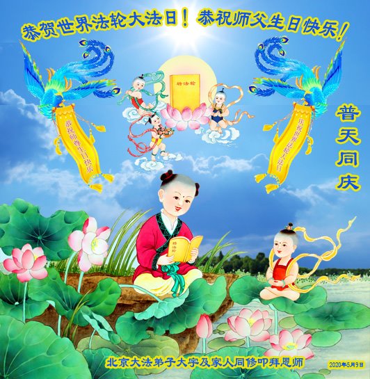 普天同庆第二十一届五·一三世界法轮大法日! 恭贺法轮大法洪传世界二十八周年! 北京海淀区大法弟子敬上 2020年5月10日 北京西城区大法弟子及家人恭祝师尊生日快乐!
