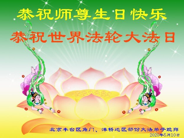 我们夫妻二人一九九七年得法至今,一直认为师父给我们的是最好的,法轮大法是最正的。虽然历经磨难,走过的路也不平坦。但却越来越成熟,一定坚定正念,做好三件事,走正自己的路。在此我们恭祝师尊生日快乐!和全世界大法弟子一起热烈庆祝法轮大法日! 北京市海淀区俩弟子敬上 二零二零年五月十日 北京市大法弟子恭贺世界法轮大法日!