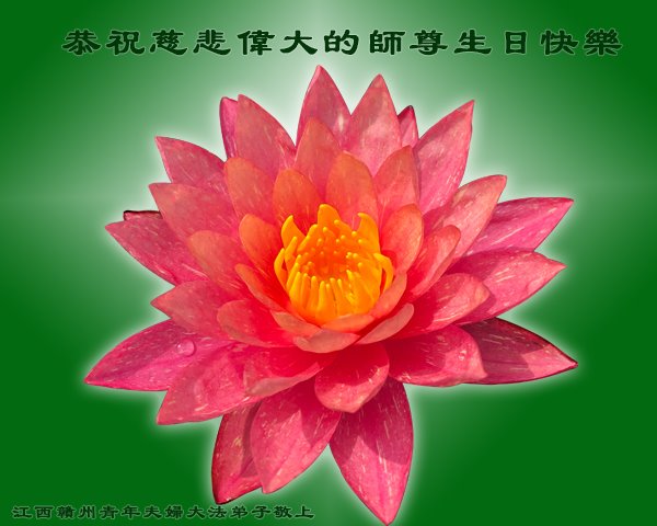 恭贺世界法轮大法日! 弟子无以言表,感恩慈悲伟大的师父苦度!只有更精進。唯愿师尊笑!恭祝师父生日快乐!恭贺法轮大法日! 江西赣州市一大法弟子全家敬上 合十 |