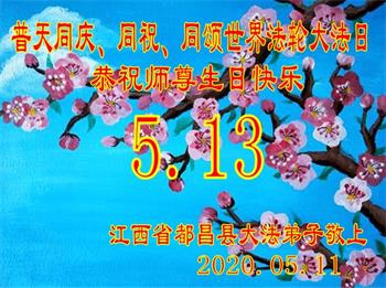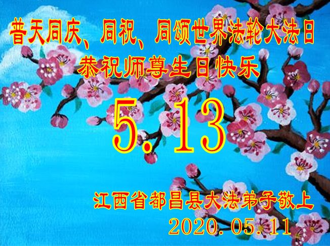 恭祝师尊生日快乐! 普天同庆同祝同颂世界法轮大法日 5.13 恭祝师尊生日快乐! 江西省都昌县大法弟子敬上 2020.05.11 江西南昌母女大法弟子恭祝师尊生日快乐!恭贺5.13世界法轮大法日!