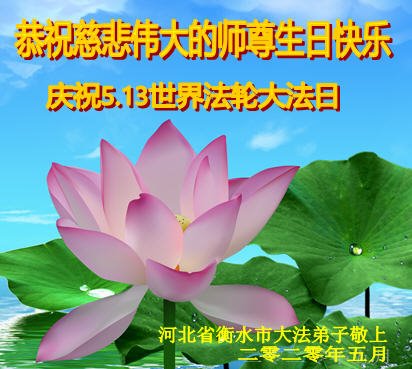 河北大法弟子恭贺五·一三世界法轮大法日!恭祝慈悲伟大的师尊生日快乐!