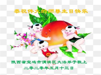 陕西省宝鸡市一大法弟子及全家人恭祝师尊华诞!