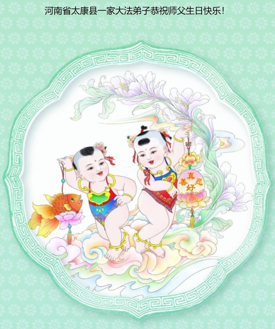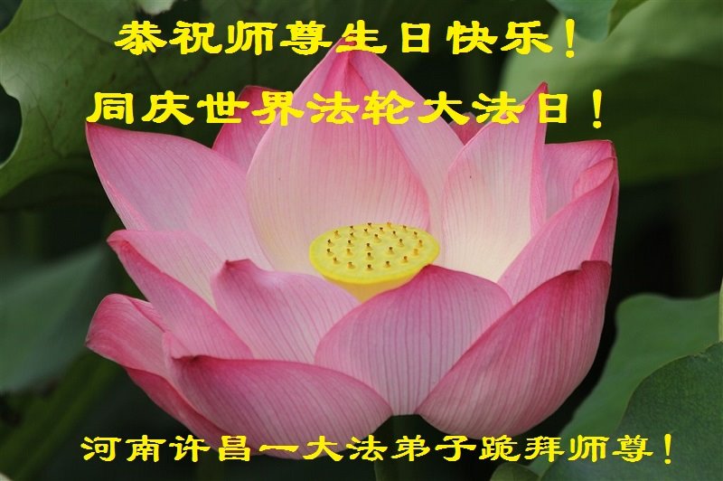 感谢师父时时刻刻帮助我,自己的提高都是在师父的看护下走过来的,谢谢师父! 师父生日快乐!恭贺世界法轮大法日! 河南周口淮阳区大法弟子恭祝慈悲的师尊生日快乐!